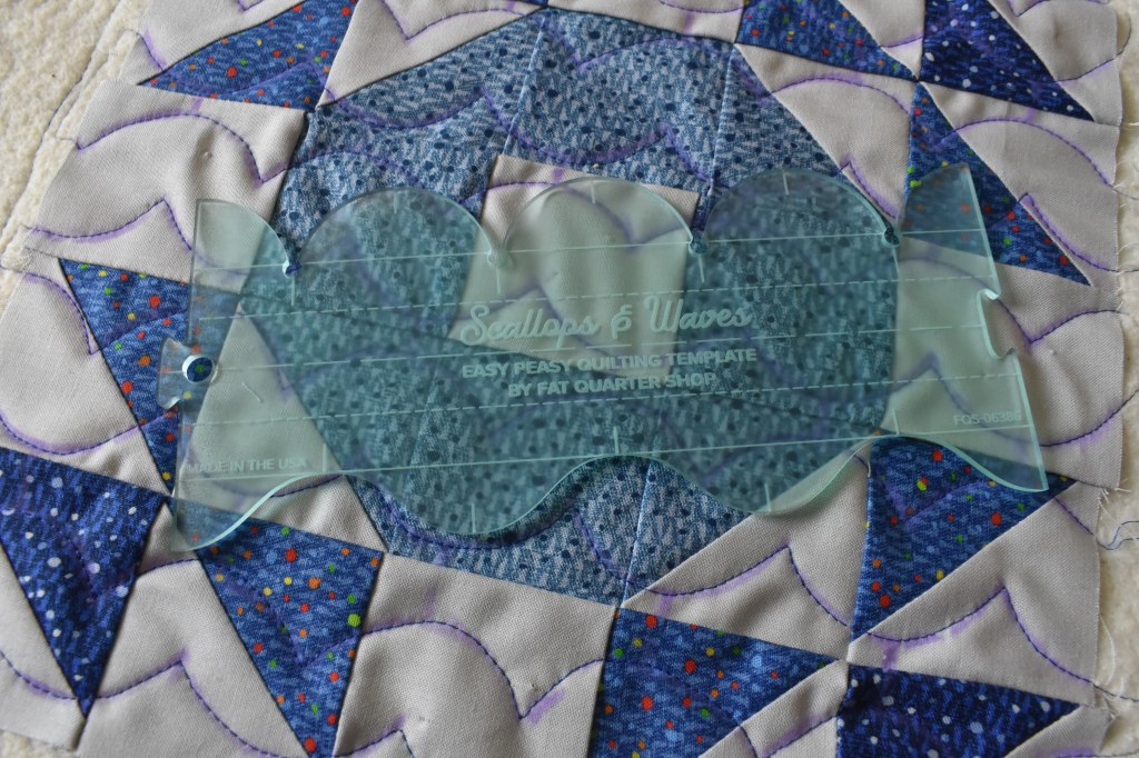 I used some chalk to trace the template and then got to quilting! I think this is really a great tool to create quilting guidelines on your project to follow!