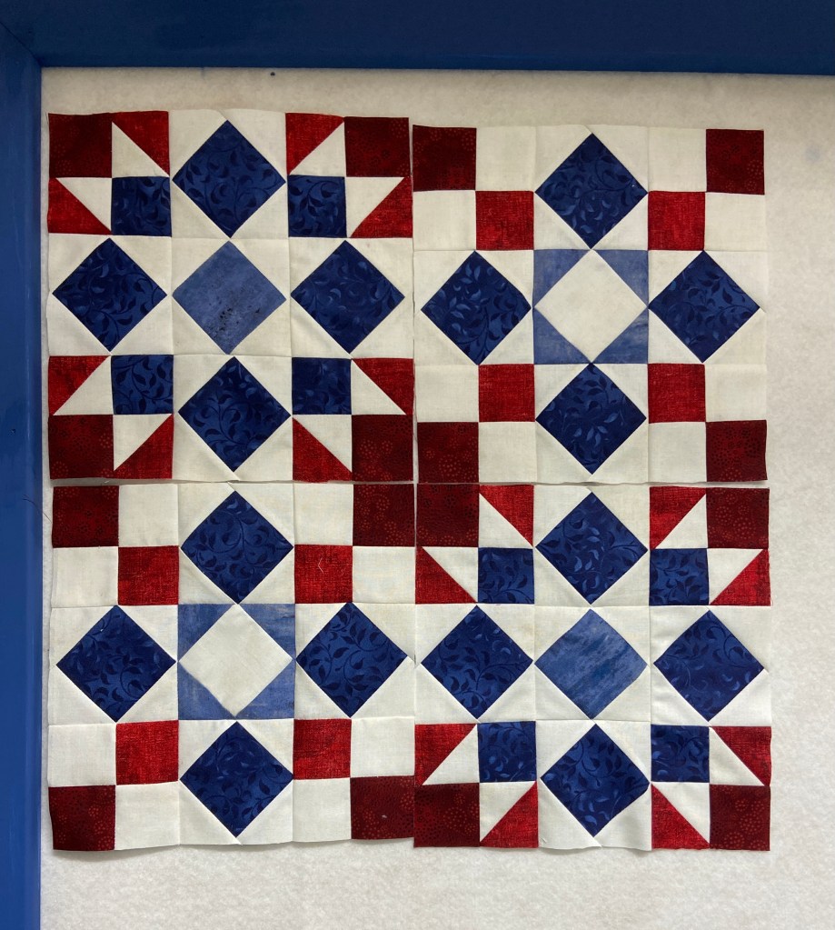 After finishing all four blocks, two of each, I had quite a bit of fabric left over. I am going to save it just in case I need it for other blocks.