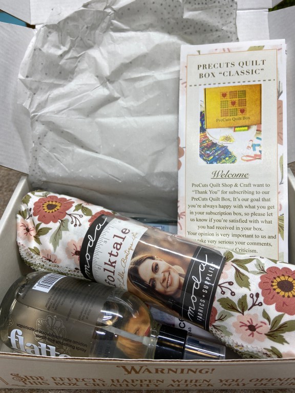 I love getting subscription boxes. It is pretty much like getting a monthly present, and its always a fun surprise. By far, my favorite box, is the Classic quilt box from the Precuts Quilt Shop. I always get great quality quilt items and the box is always a fantastic value.