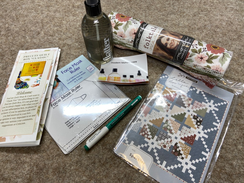 Like always, I received a few extra goodies. I got a face mask template, a frixion pen, which I am excited to try out, I have heard good things, some fabric spray, and a pattern!
