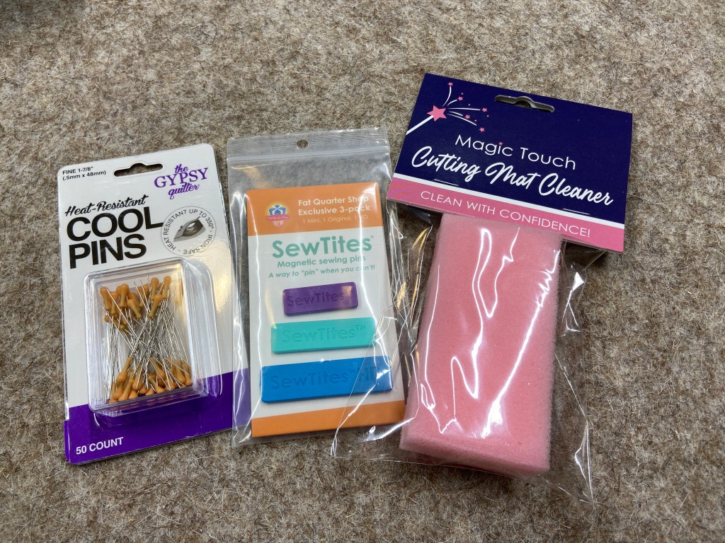 I still haven’t tried the heat resistant pins or the Sew Tites, but I did try the mat cleaner. Unfortunately, I wasn’t really impressed with it. It really didn’t work any different than just using a regular sponge.