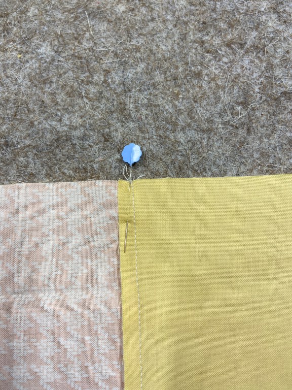 Lay our your block and make sure everything lines up correctly. Lay your blocks right sides together and pin at the seam to ensure they line up nicely.