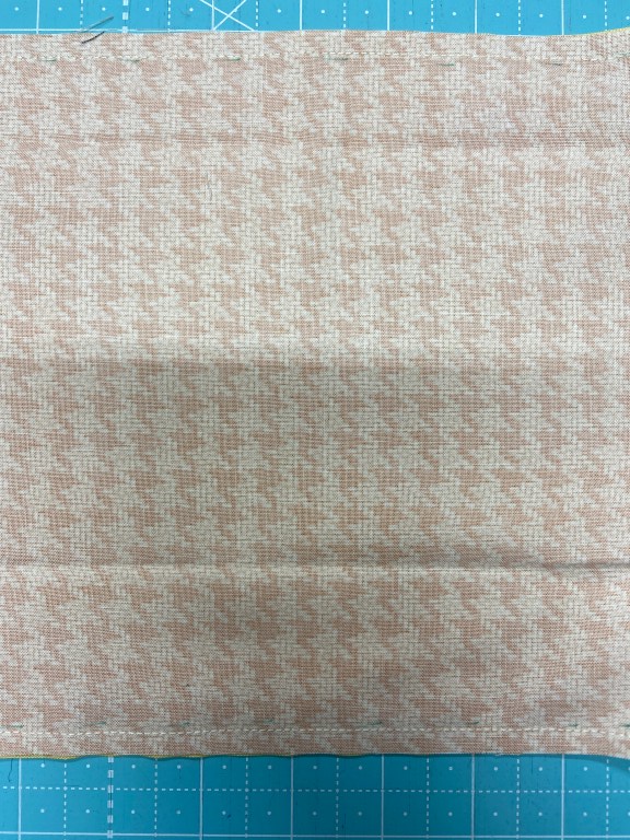 Now lay your blocks right sides together and sew a .25″ seam along two opposite sides of the square.