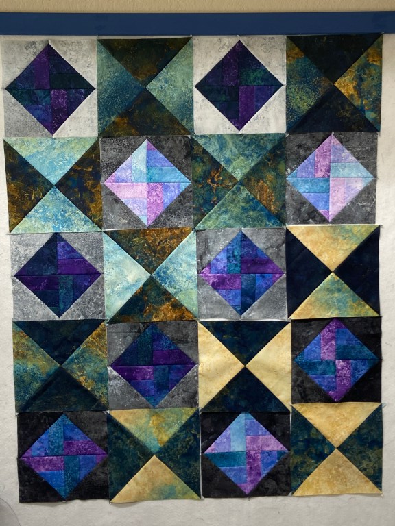 Now that you have finished 10 blocks of each design you can plan out the layout of your quilt.