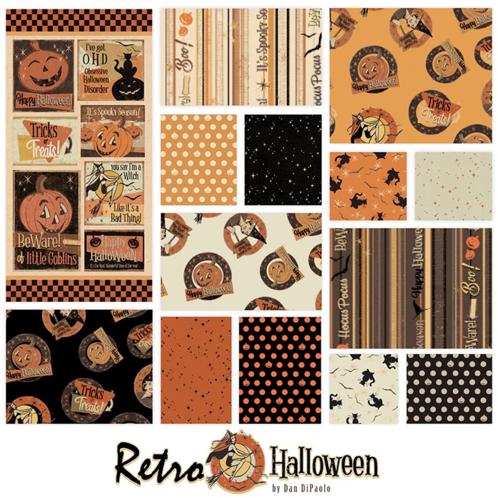 The Retro Halloween line has me drooling because I really love that the orange colors have more of a burnt orange tone or a dull look to them rather than that bright orange many Halloween fabrics have. I love the polka dot prints too! The dots aren’t perfectly round and are a little rustic and it just truly fits the retro/antique/ spooky vibe! I love it!