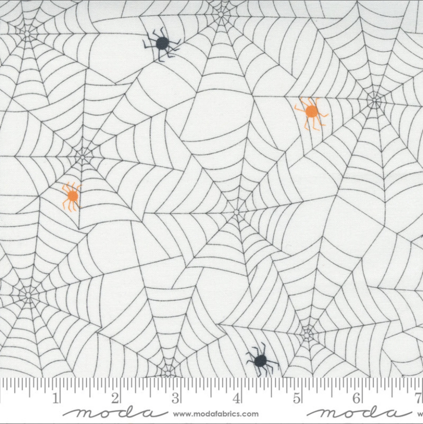 I had to include a spiderweb print! When it comes to Halloween fabrics I really love finding a good spiderweb print. Maybe it is because spiders completely freak me out so I find their webs completely spooky and perfect for Halloween! Not only is this print pure perfection, and I just love the orange and black spiders, but the name of this fabric line, Too Cute To Spook, just makes me want to buy all the things! I love it!