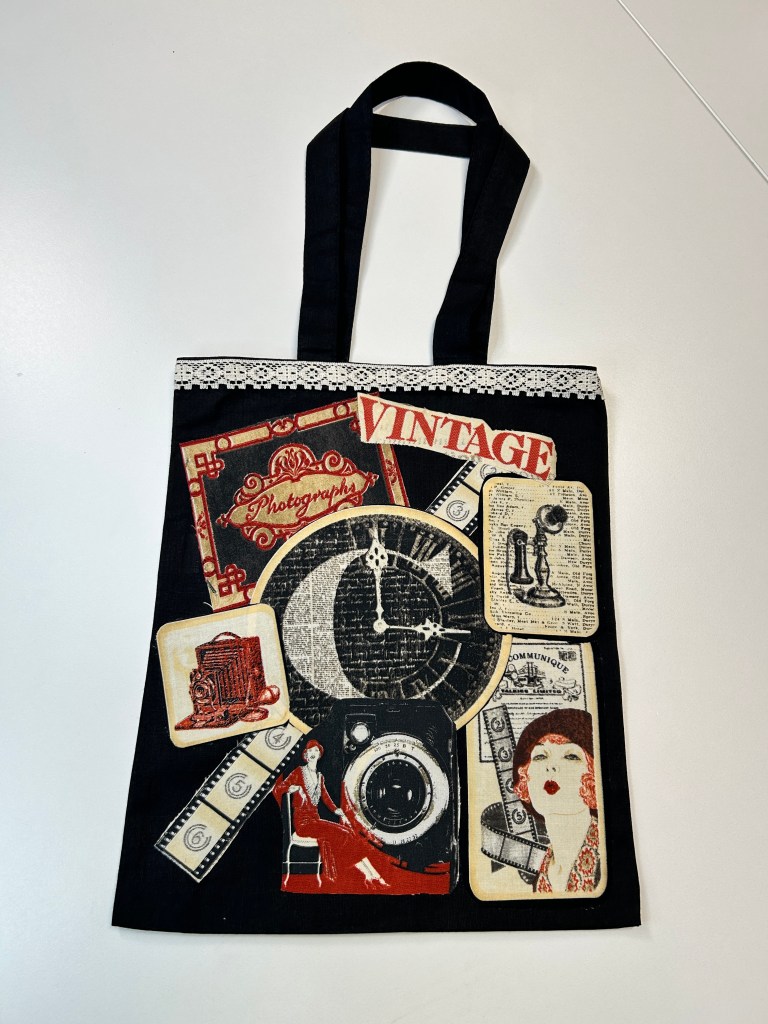 Here is a link to the step by step video tutorial for the no sew collage tote bag: Click Here
